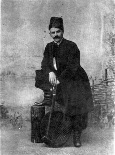 Khotkevych, Hnat [Хоткевич, Гнат; Xotkevyč], b 31 December 1877 in Kharkiv, d 8 October 1938. (Photo: Hnat Khotkevych.) Modernist writer, scholar, composer, theater director, and civic figure. After graduating from the Kharkiv Technological Institute in 1900, he worked as a railway engineer. In 1899 he arranged a performance by kobzars and lirnyks at the 11th Archeological Conference in Kharkiv. Politically persecuted for being one of the leaders of a railwaymen's strike in Liubotyn in 1905, he was forced to emigrate to Galicia in 1906, where he lived in Lviv and then (1906–12) in Kryvorivnia, Kosiv county. He toured Galicia and Bukovyna with concerts of Ukrainian folk songs accompanied by the bandura and in 1910 founded the Hutsul Theater in Krasnoilia, Kosiv county. Returning to Kharkiv in 1912, Khotkevych became involved in the cultural life there: he gave public lectures; founded a workers' theater, which in three years staged over 50 plays, mostly of Ukrainian classics; and in February 1913 became the editor of the literary journal Visnyk kul’tury i zhyttia. Again he came under political persecution and in 1915 was banished from Ukraine. Until the outbreak of the February Revolution of 1917 he lived in Voronezh. He was opposed to the Bolshevik occupation of Ukraine, but from 1920 on was an active participant in Soviet cultural life. From 1920 to 1928 he taught Ukrainian literature and Ukrainian language at the Derhachi Zootekhnikum. Later he taught bandura-playing at the Kharkiv Music and Drama Institute. Throughout his life he worked at perfecting the art of bandura-playing and wrote a manual, Pidruchnyk hry na banduri (A Manual on Playing the Bandura, 1909; repr 1930), on the subject. He also composed a number of songs, including ‘Baida,’ ‘Buria na Chornomu mori’ (A Storm on the Black Sea), ‘Sofron,’ ‘Nechai,’ and ‘A v poli korchomka’ (There's a Tavern in the Field). His musical activity played a significant role in the development of the bandura.