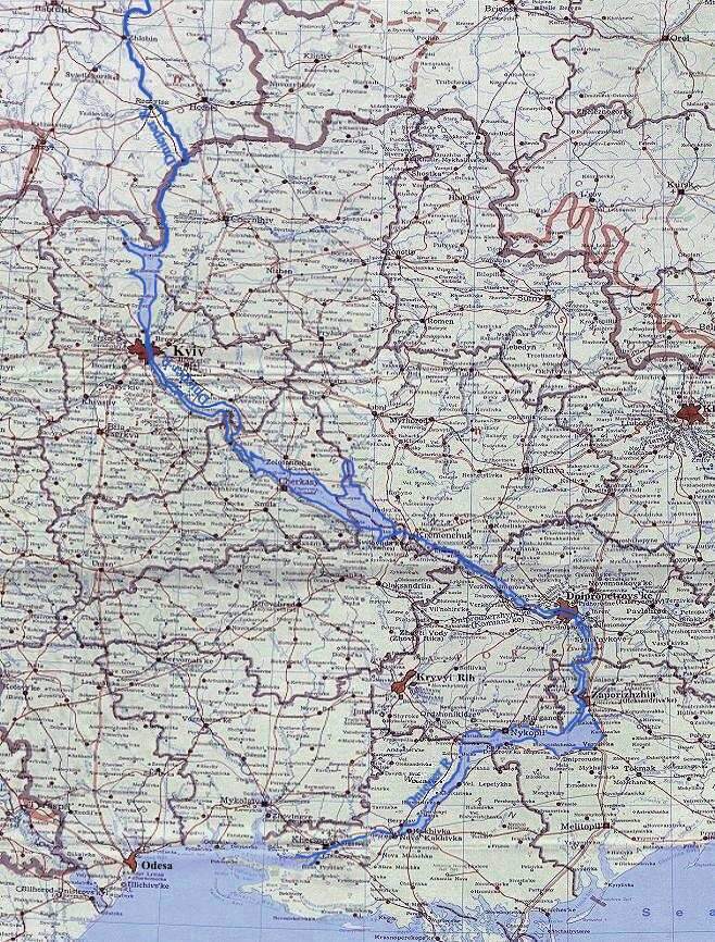 The Dnipro River flows south through the center of Ukraine and bisects its natural zones—forest, forest-steppe, and steppe—interconnecting them and connecting them with the Black Sea. Of the long-settled principal areas of Ukraine, only Galicia, western Volhynia, and Transcarpathia lie beyond the basin of the Dnipro. Travel is easy from the Dnipro Basin to basins northwest of it —the Vistula River, the Neman River, and the Daugava River—but difficult to other basins, such as the basins of the Dnister River, the Boh River, the Volga River, and the Don River. Easy communications between the Dnipro River, the Prypiat River, and the Buh River by means of the Vistula facilitated the expansion of Poland into Ukraine. The Dnipro’s role as a unifying force and gateway to the sea was, however, weakened by a 70 km stretch of rapids in the steppe belt. In spite of this obstacle, the Dnipro was the main axis of the first Ukrainian state—Kyivan Rus’. The nucleus of a second state—the Zaporozhian Sich—arose on the Dnipro. The river is the artery of Ukraine, its main highway, and its source of hydroelectric power.