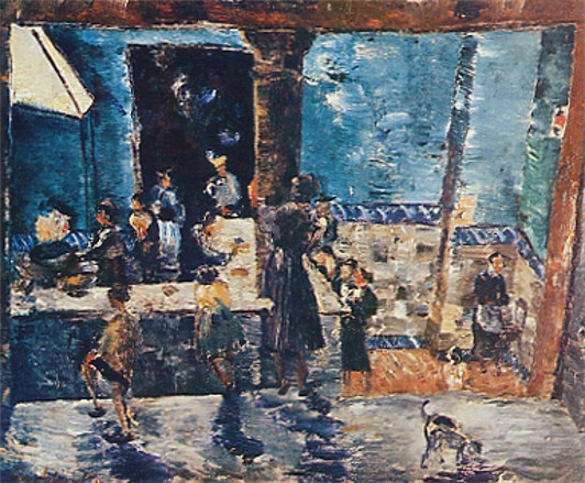 From 1919 to 1921 he lived in Istanbul, where he painted hundreds of watercolors (such as Turkish Kitchen [1920], Dancing Dervish [1920], and Turks in a Café [1921]). In 1921 he moved to France and, later that year, twelve of his Istanbul paintings were exhibited at the Salon d'Automne in Paris together with the works of F. Leger. He made two trips to Greece and Crete (in 1921 and 1923) where he painted such landscapes as Olympia (1923) and Mount Ida, Crete (1923). In 1927 he settled in Cagnes in southern France. By this time he had changed his cubist style to a more dynamic expressionism, distinguished by cascades of exotic oriental colors (eg, Toulon [1925]).