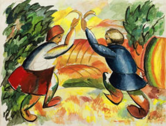 Malevich, Kazimir [Малевич, Казимир; Malevič], b 23 February 1878 in Kyiv, d 15 May 1935 in Leningrad. Painter, designer, and theorist. Born in Kyiv into a mixed Polish-Ukrainian family (his father was Polish, while his mother was a Ukrainian from the Poltava region), Malevich grew up in Ukrainian villages in the Chernihiv region where he became closely acquanited and deeply impressed by Ukrainian folk art. He studied at the Kyiv Drawing School under Mykola Pymonenko (1895–7), the Moscow School of Painting, Sculpture, and Architecture (1904–5), and F. Rerberg's studio in Moscow (1905–10). Influenced at first by the Impressionists and Fauvists, he participated in avant-garde exhibitions in Moscow, at which he displayed paintings in a neoprimitivist style, such as Village Woman with Pails and Child (1912) and The Harvesters (1912–13); cubo-futurist works, such as The Knife Grinder (1912); and paintings, such as An Englishman in Moscow (1914) and A Private of the First Division (1914), which show the influence of Pablo Picasso and Georges Braque's synthetic cubism.