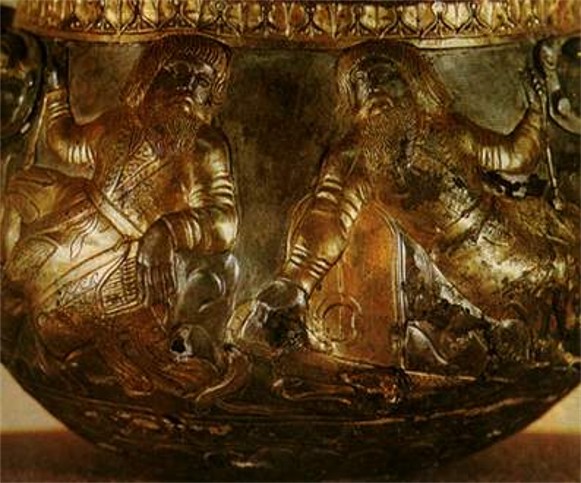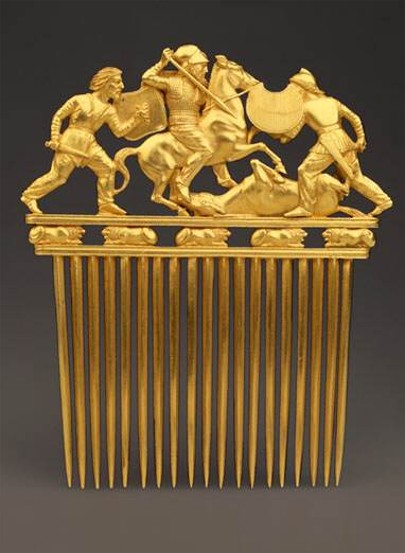 Image - A reconstructed face of a Scythian noblemman buried in the Nikopol kurhan. Image - A contemporary reconstruction of an armour of a Scythian warrior. Image - A Scythian warrior (6th century BC) (reconstruction). Image - Scythians shooting with bows (gold, Panticapeum, 4th century BC). Image - A gold statuette of a Scythian man from the Kul Oba kurhan. Image - A reconstructed bust of teh Scythian King Skhilouros from the mausoleum in Neapolis (near Simferopol in the Crimea). Image - Remnants of the early Scythian Nemyriv fortified settlement (7th-6th century BC). Image - A Scythian gold comb from the Solokha kurhan (4th century BC). Image - A detail of a Scythian gold pectoral from the Tovsta Mohyla kurhan, 4th century BC (Museum of Historical Treasures of Ukraine). Image - Detail of a Scythian bowl (4th cent BC) found in the Haimanova Mohyla kurhan. Image - A Scythian gold pectoral from the Tovsta Mohyla kurhan, 4th century BC (Museum of Historical Treasures of Ukraine). Image - Scythians Image - A a detail of a Scythian gold bowl from the Kul Oba kurhan. Image - A Scythian gold cup, 4th century BC (Museum of Historical Treasures of Ukraine).